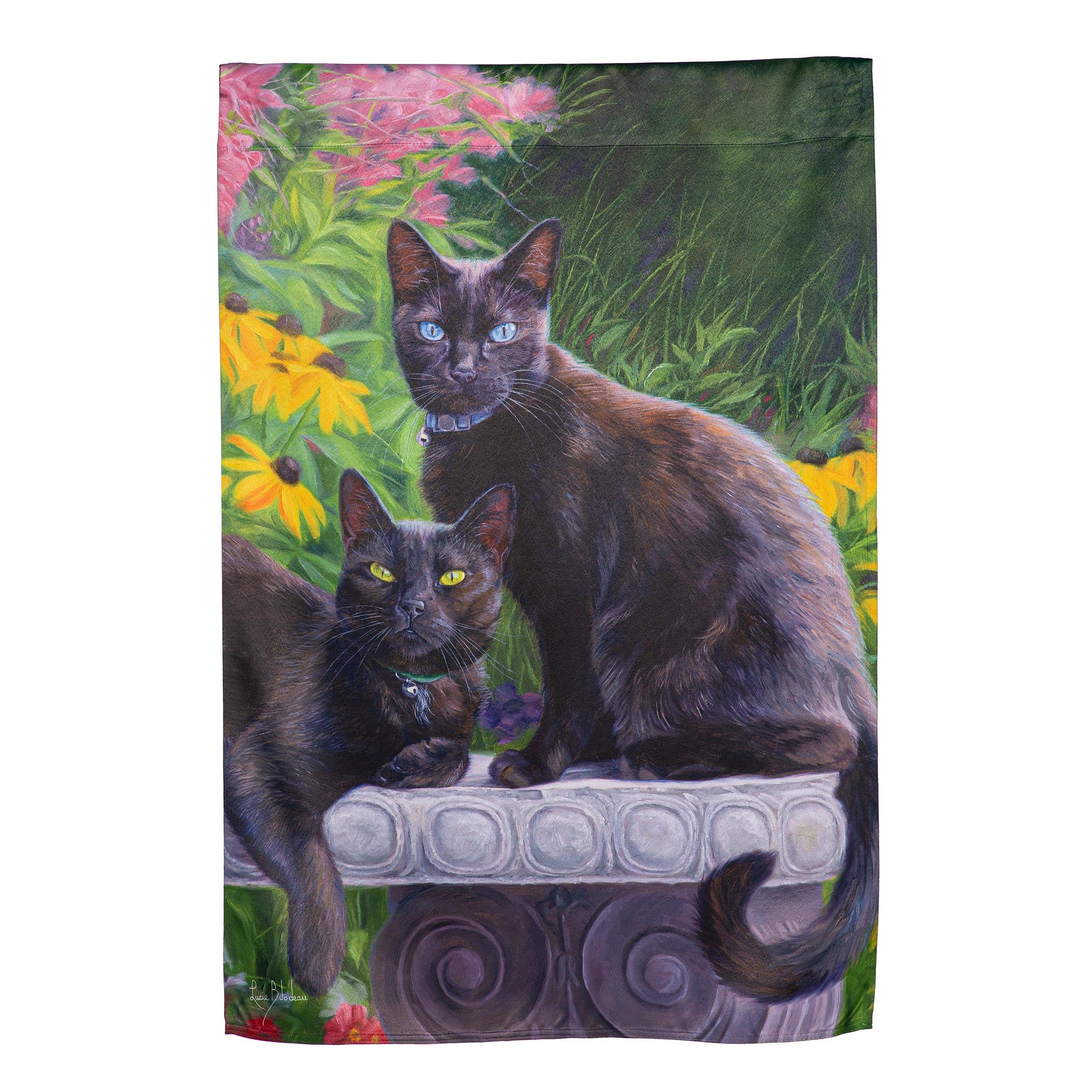 This charming flag adds an extra special touch to any home. Features lively colors and attractive Black Beauties design. Flag is crafted of medium-weight suede fabric made from recycled plastic that provides a soft and durable texture. Artwork is heat transferred onto the sun-blocking material so that it is easily viewed from both sides. The weatherproof flag will not fray or fade with continued outdoor use. This flag features a sleeve for use with any standard flagpole or stand, sold separately.