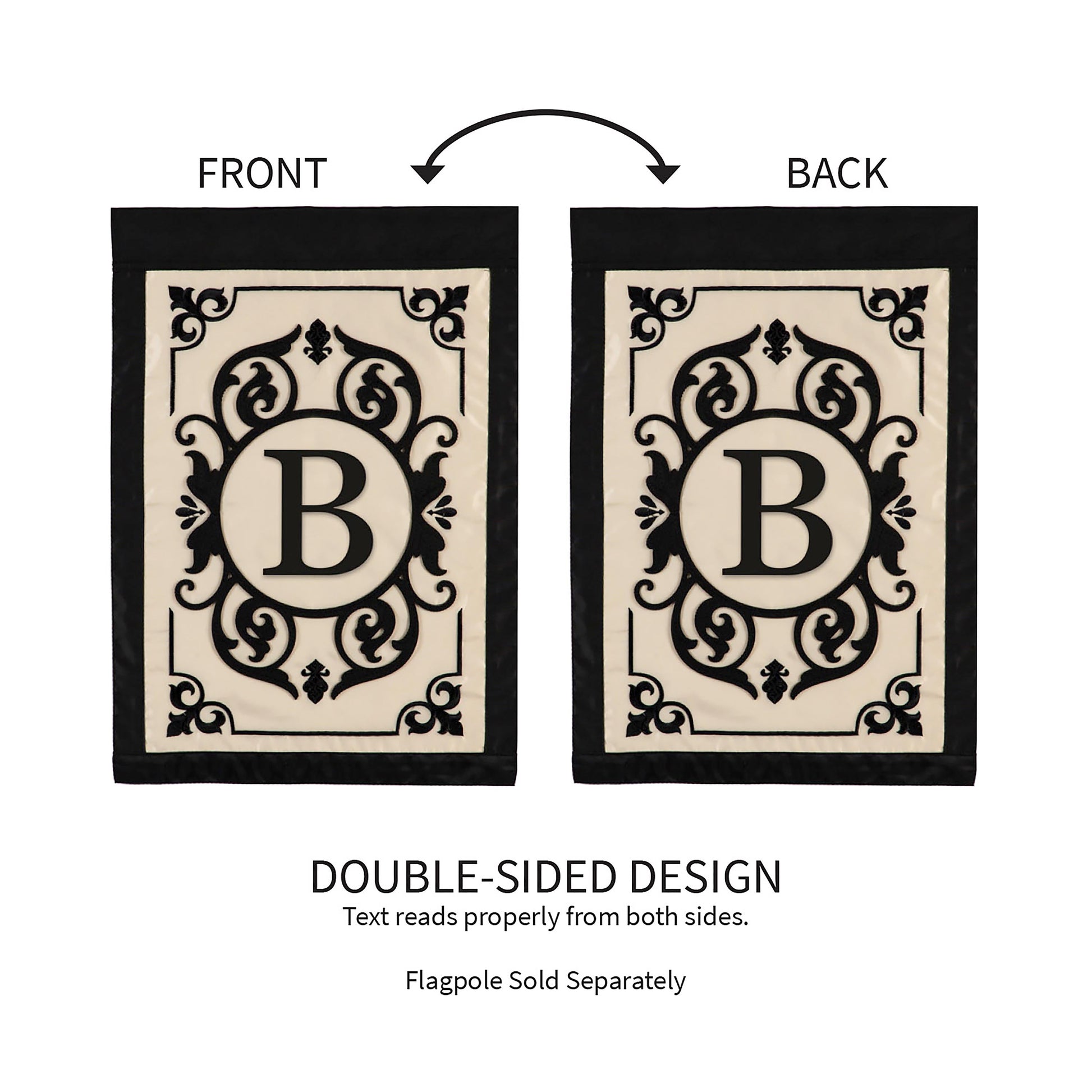 Greet guests in style with this Cambridge Monogram Appliqué Garden Flag, Letter B. Eye-catching embellishments and intricate details make the piece stand out. Our appliqué flags were first introduced more than 20 years ago, and thanks to their bold artwork and top-of-the-line materials they continue to be just as popular today. Each flag is made of strong 310 denier nylon to withstand all types of weather. We combine pieces of fade-resistant fabric with tight, detailed stitching to create a mosaic effect. The soft yet heavyweight material illuminates beautifully in sunlight.