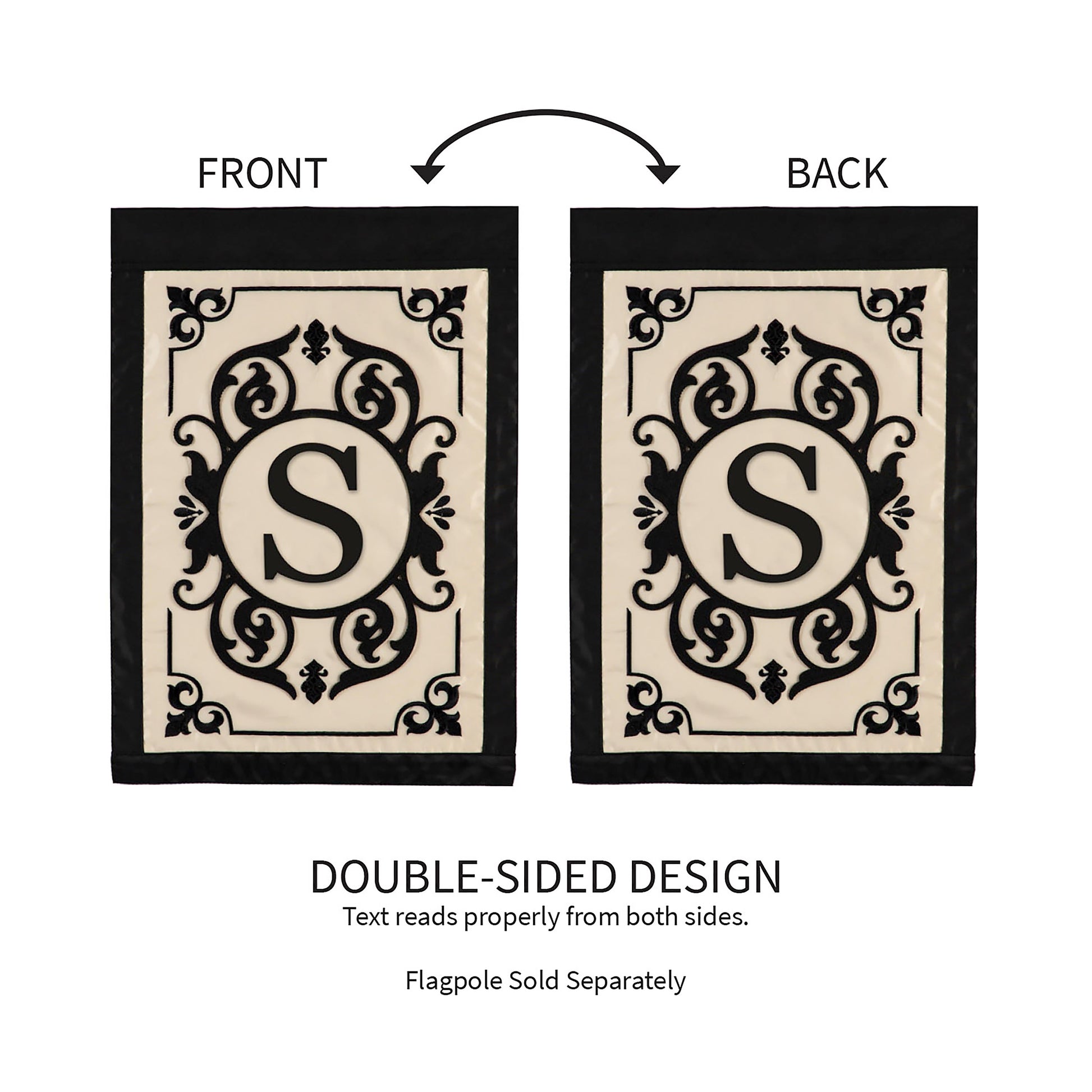 Greet guests in style with this Cambridge Monogram Appliqué Garden Flag, Letter S. Eye-catching embellishments and intricate details make the piece stand out. Our appliqué flags were first introduced more than 20 years ago, and thanks to their bold artwork and top-of-the-line materials they continue to be just as popular today. Each flag is made of strong 310 denier nylon to withstand all types of weather. We combine pieces of fade-resistant fabric with tight, detailed stitching to create a mosaic effect. The soft yet heavyweight material illuminates beautifully in sunlight.