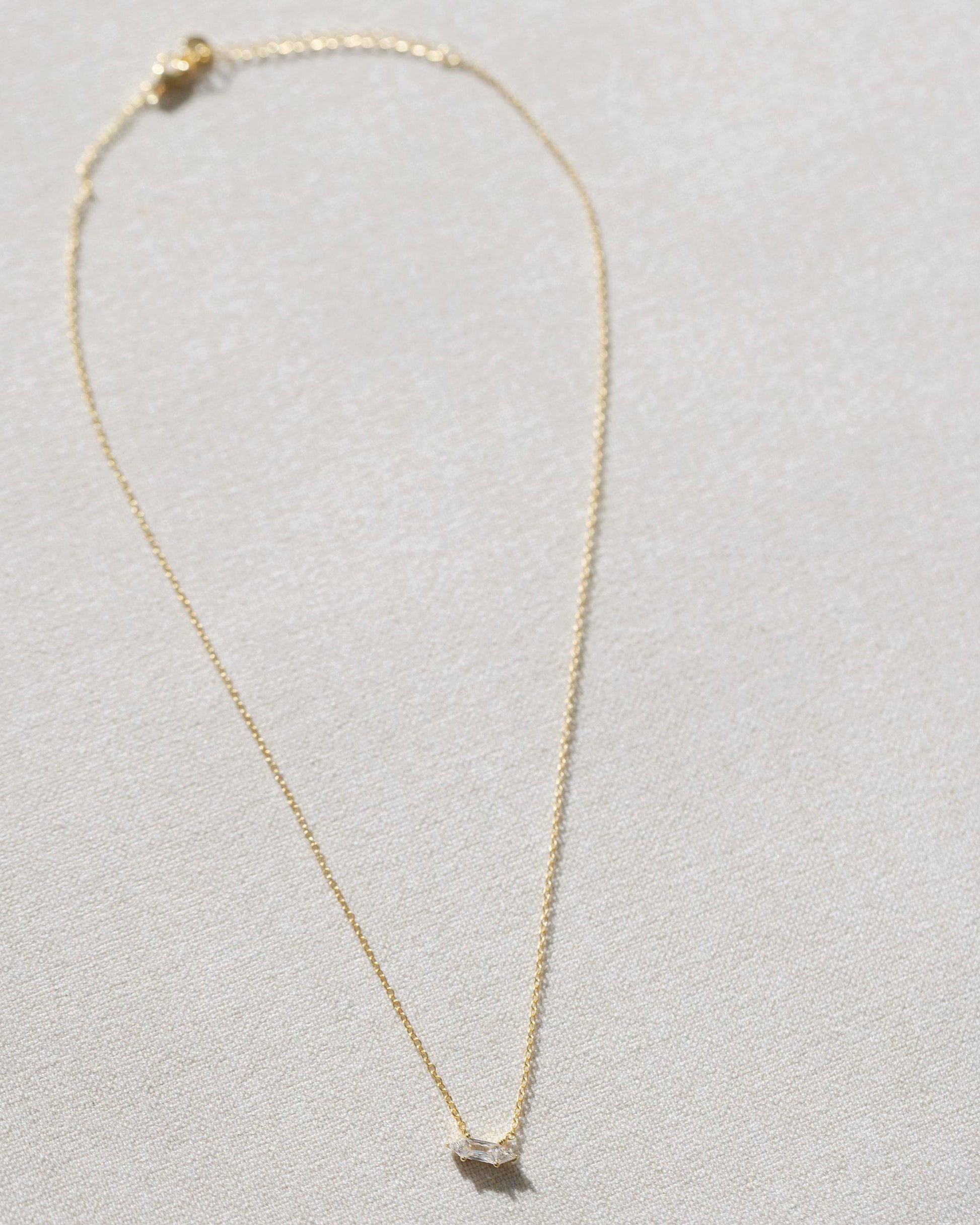Elevate your style game with our Crystal Nantucket Necklace. Crafted with 14k gold vermeil and a stunning moissanite crystal bar, this necklace offers timeless elegance. Its adjustable chain allows for customizable length.