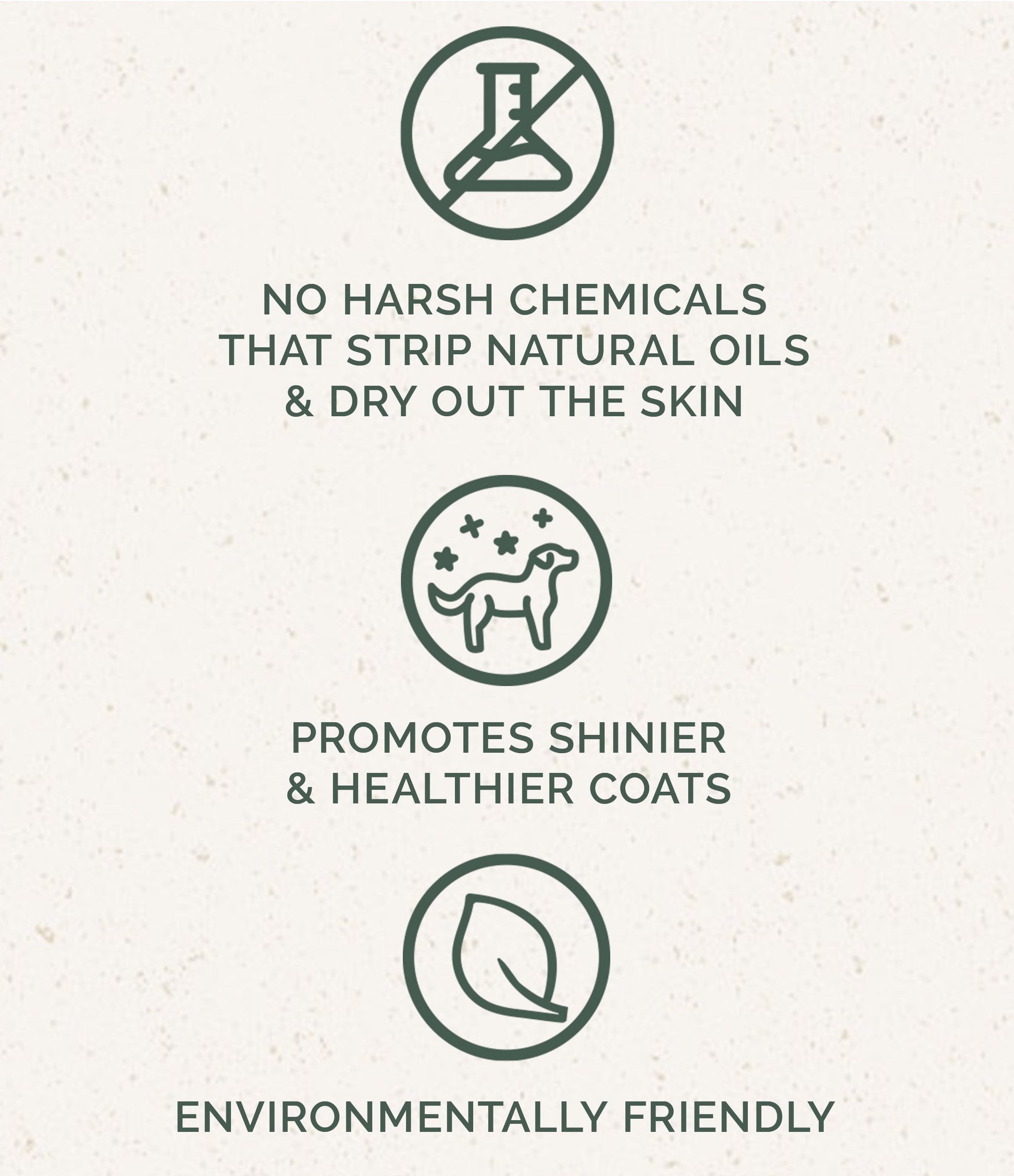 Our all natural shampoo blend for dogs, enriched with moisturizing sunflower oil and shea butter, is excellent for producing healthy, shiny coats.