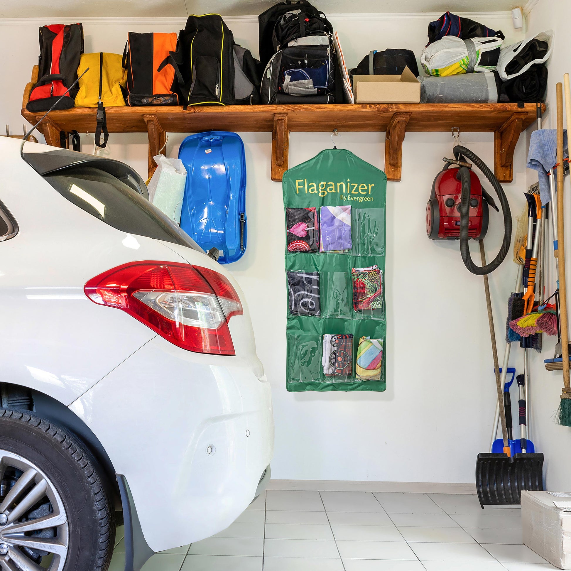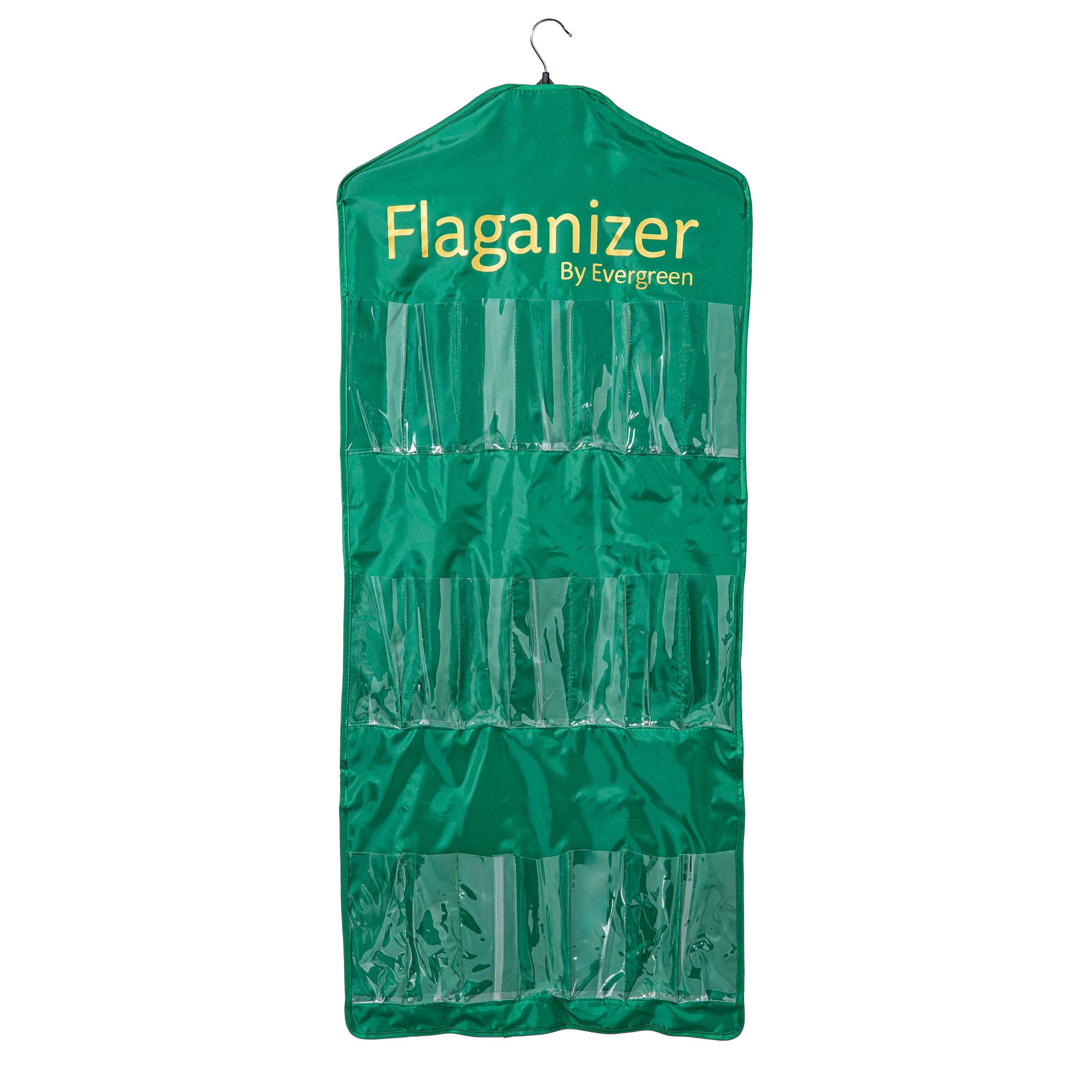 Keep all of your flags organized in one easy location! This two-sided flag organizer can hold up to 33 of your favorite house or garden flags, so you'll easily be able to decorate your home appropriately for the season!