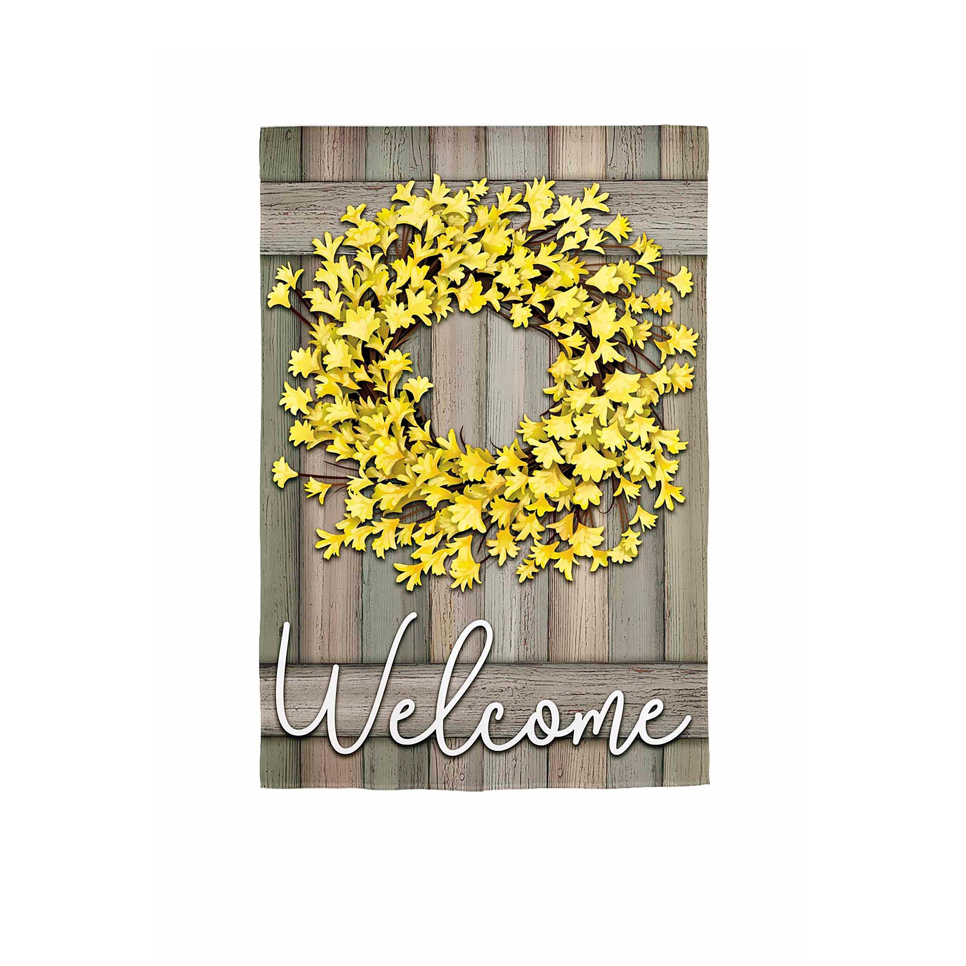Forsythia Farmhouse Wreath Garden Burlap Flag