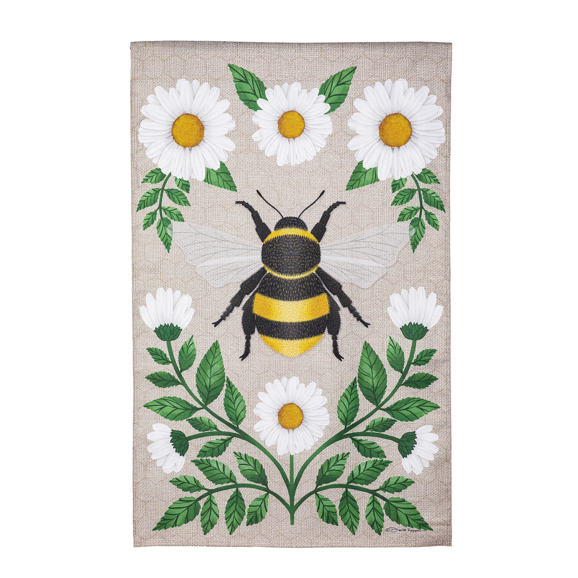This eye-catching flag adds an extra special touch to any garden or outdoor space. With its floral bee design, this flag welcomes friends and family in beautiful style. It’s made of medium-weight, soft burlap fabric that's made from recycled plastic that has the look and feel of real burlap. Artwork is heat transferred onto both sides of the textured fabric to create a natural, crafted look. The flag is durable and weatherproof and will not fade or fray after continued display. This flag features a sleeve for use with any standard flagpole or stand, sold separately.