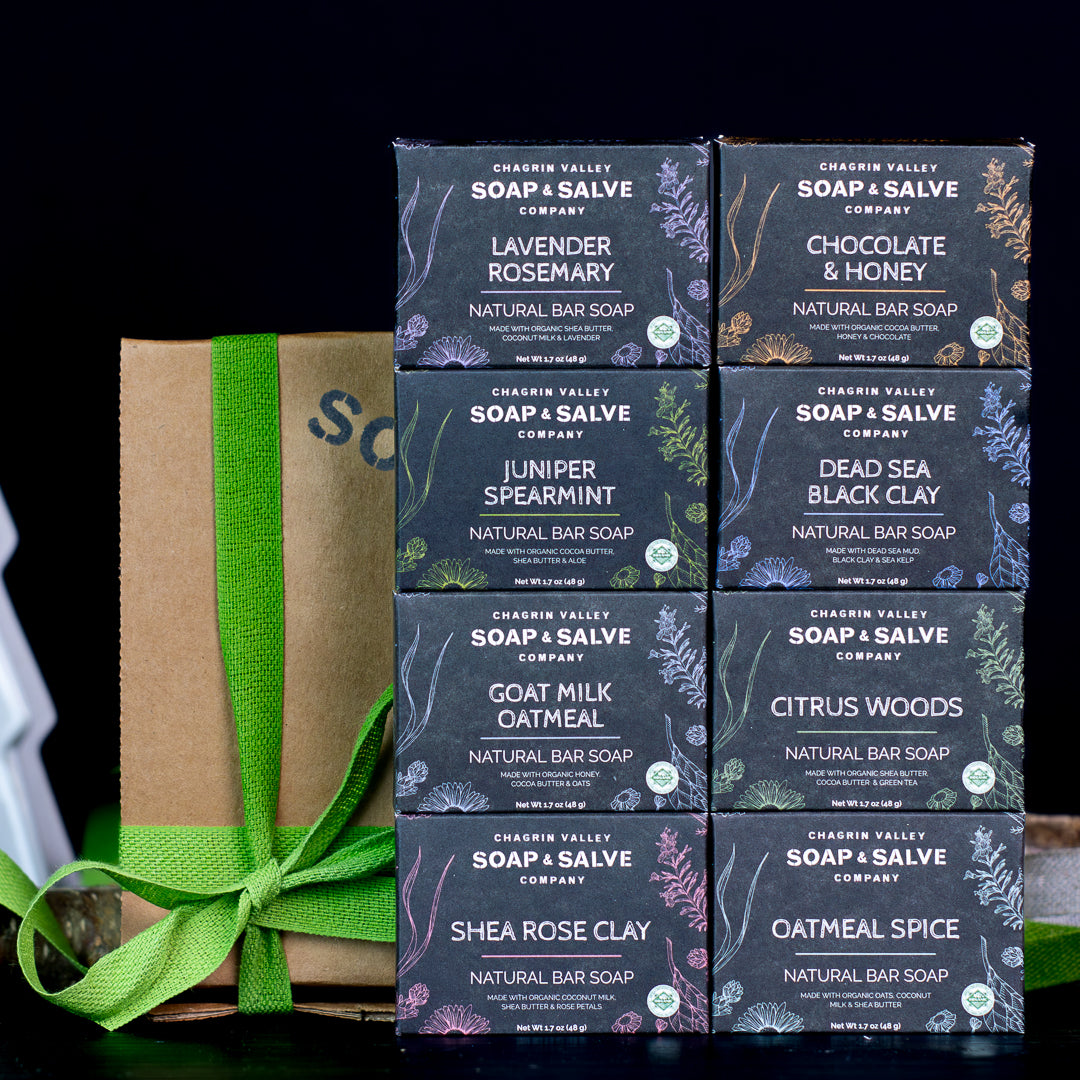 One of life’s simplest pleasures is a bar of natural handmade soap. This soap sampler box includes eight of our 1.7 ounce travel-size natural soaps nestled in a kraft gift box made from 100% recycled material.