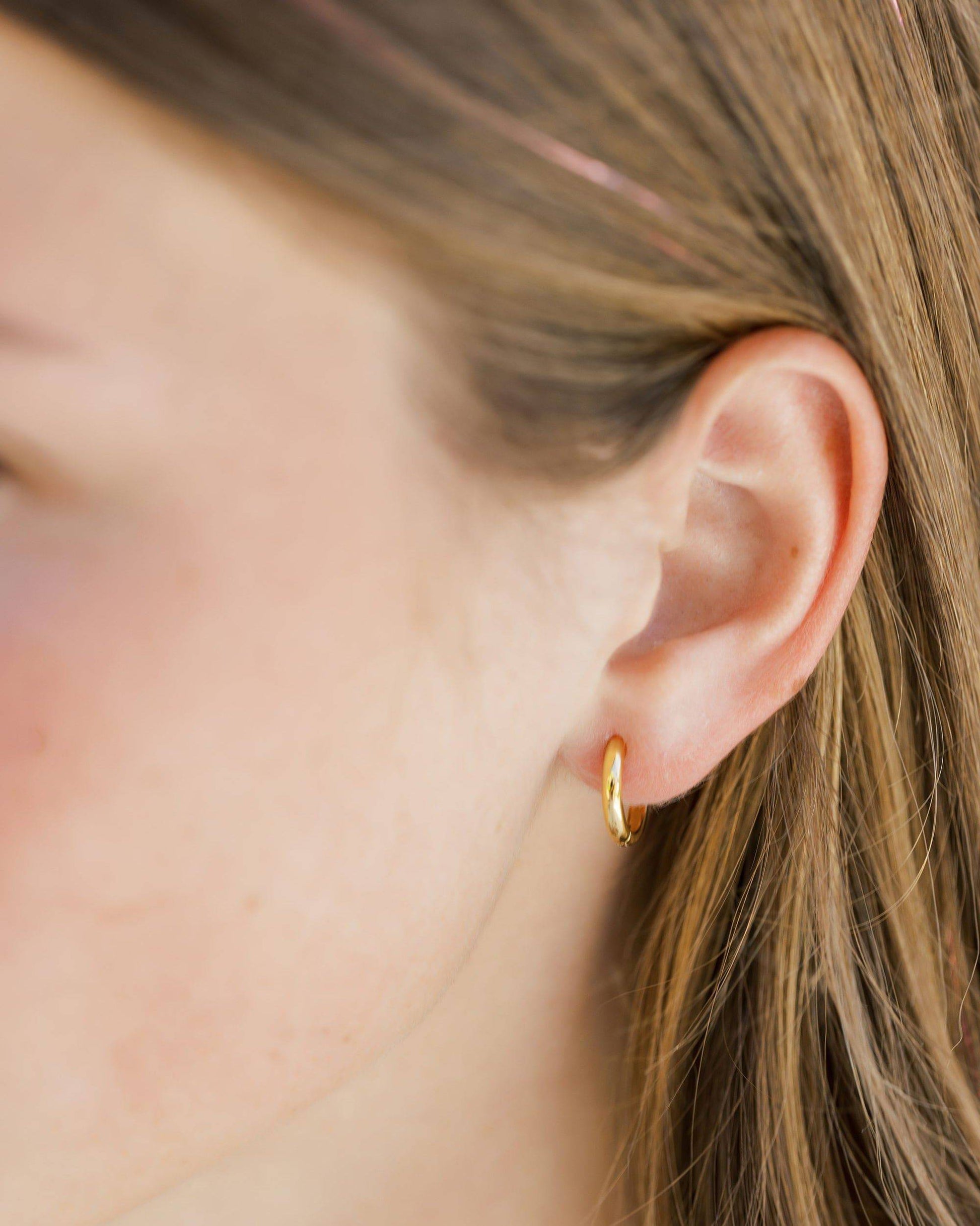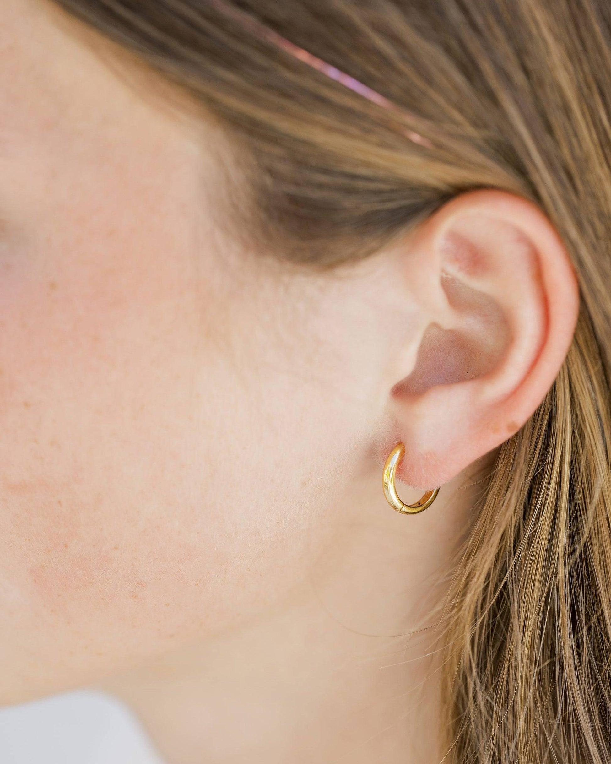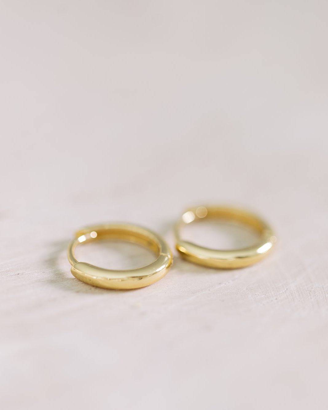 These gold huggies are perfect for everyday wear. Crafted with lightweight 18k gold vermeil, they're designed to stay securely in place with a clasp closure. Enjoy the look of pure gold in at a fraction of the price.