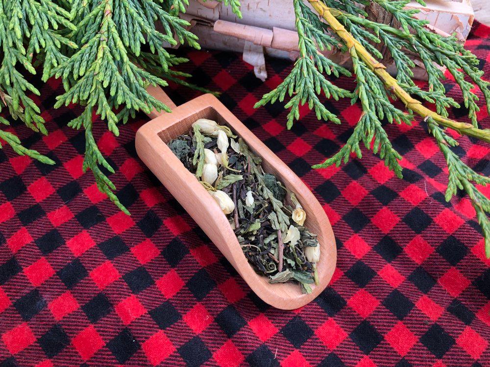 The delightful blend of lapsang and kukicha is a sensory journey, signifying the earthy aspects of camping, the majesty of the Pacific Northwest mountains, and the essential warmth of a campfire to chase away the mountain chill.