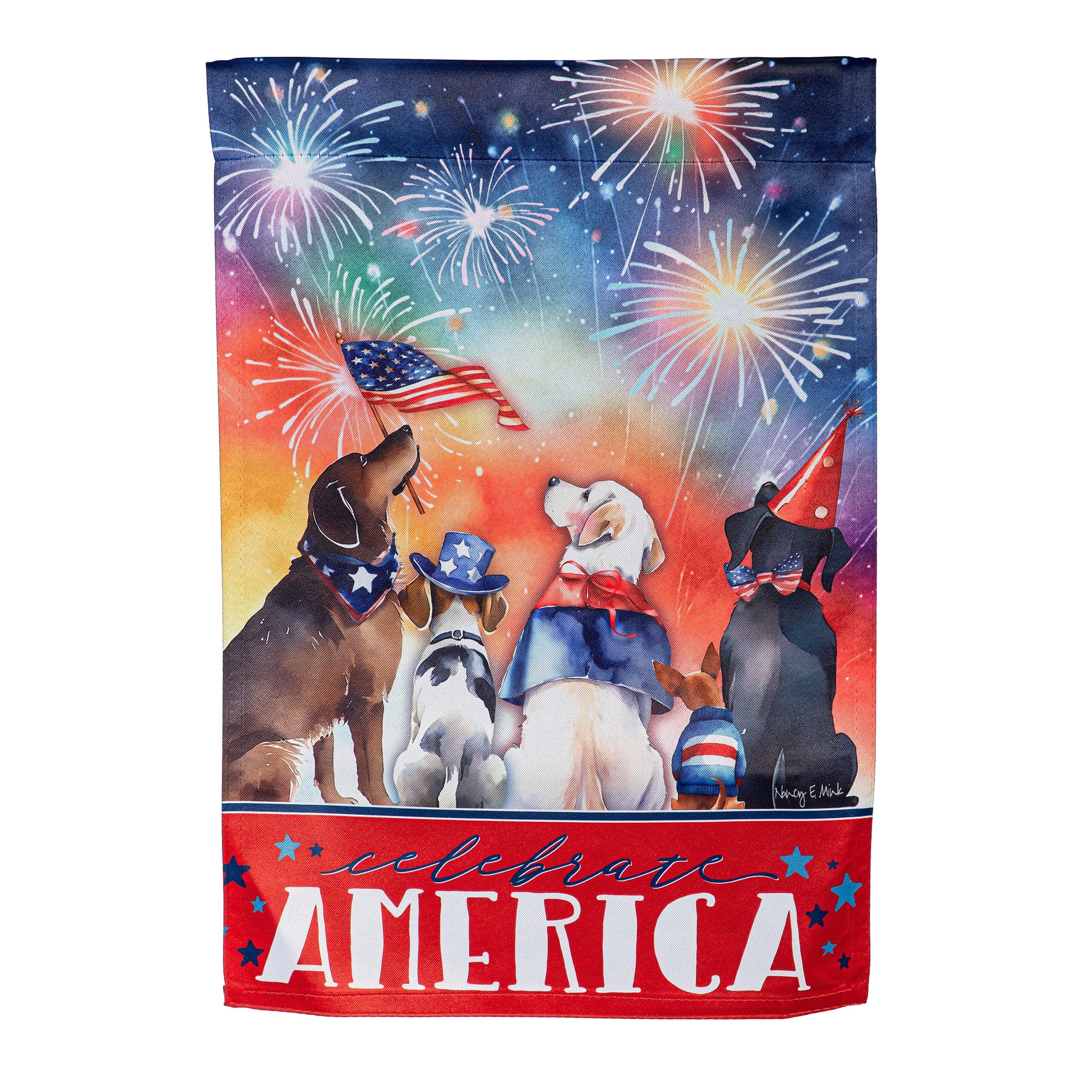 This charming flag adds an extra special touch to any home. It features a patriotic-themed design with vibrant colors. Flag is crafted of medium-weight suede fabric made from recycled plastic that provides a soft and durable texture. Artwork is heat transferred onto the sun-blocking material so that it is easily viewed from both sides. The weatherproof flag will not fray or fade with continued outdoor use. This flag features a sleeve for use with any standard flagpole or stand, sold separately.
