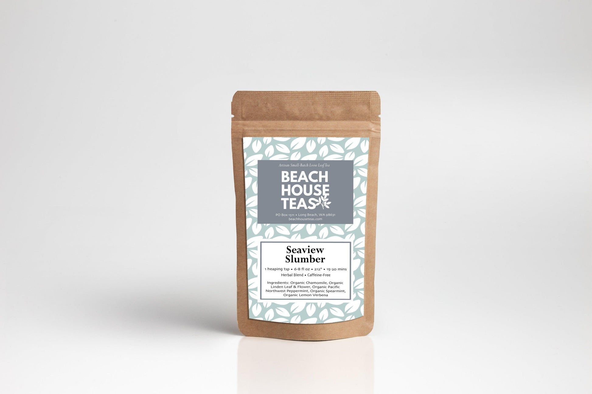 Seaview Slumber is your ticket to serenity, crafted with care from 100% organic and herbal loose leaf tea. Our enchanting blend combines the soothing properties of chamomile, linden flower, mint, and lemon verbena to create a tea that's not just a beverage but a peaceful ritual.